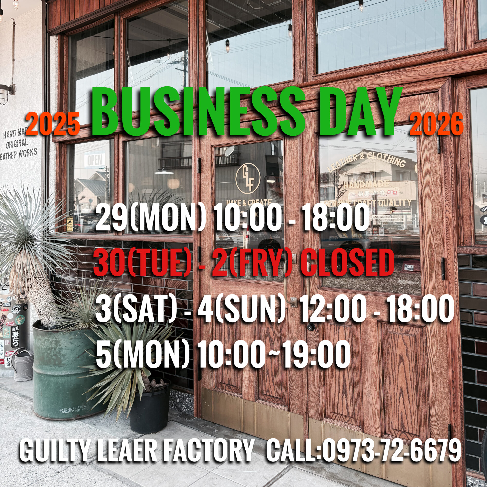 2025年の営業は12月29日(月)18時までとさせて頂きます。 発送業務に関しましては、28日中にオンラインストアにてオーダー頂いた物で在庫がある商品に関しては29日に発送致します。休業中のオーダーに関しましては、年明 […]